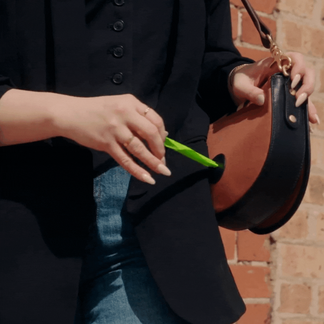Because dog parent duties don’t need to ruin your fit. The Treat Purse® includes a discreet, built-in waste bag compartment that’s easy to access when you need it — and invisible when you don’t.